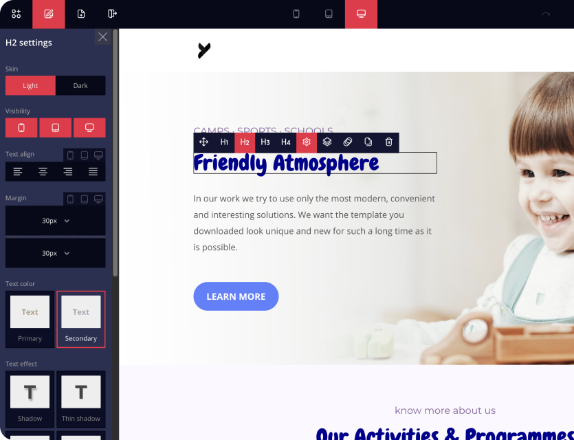 Drag-and-drop builder makes website creation Super easy, you can build your sites with a few clicks only! No coding is required.