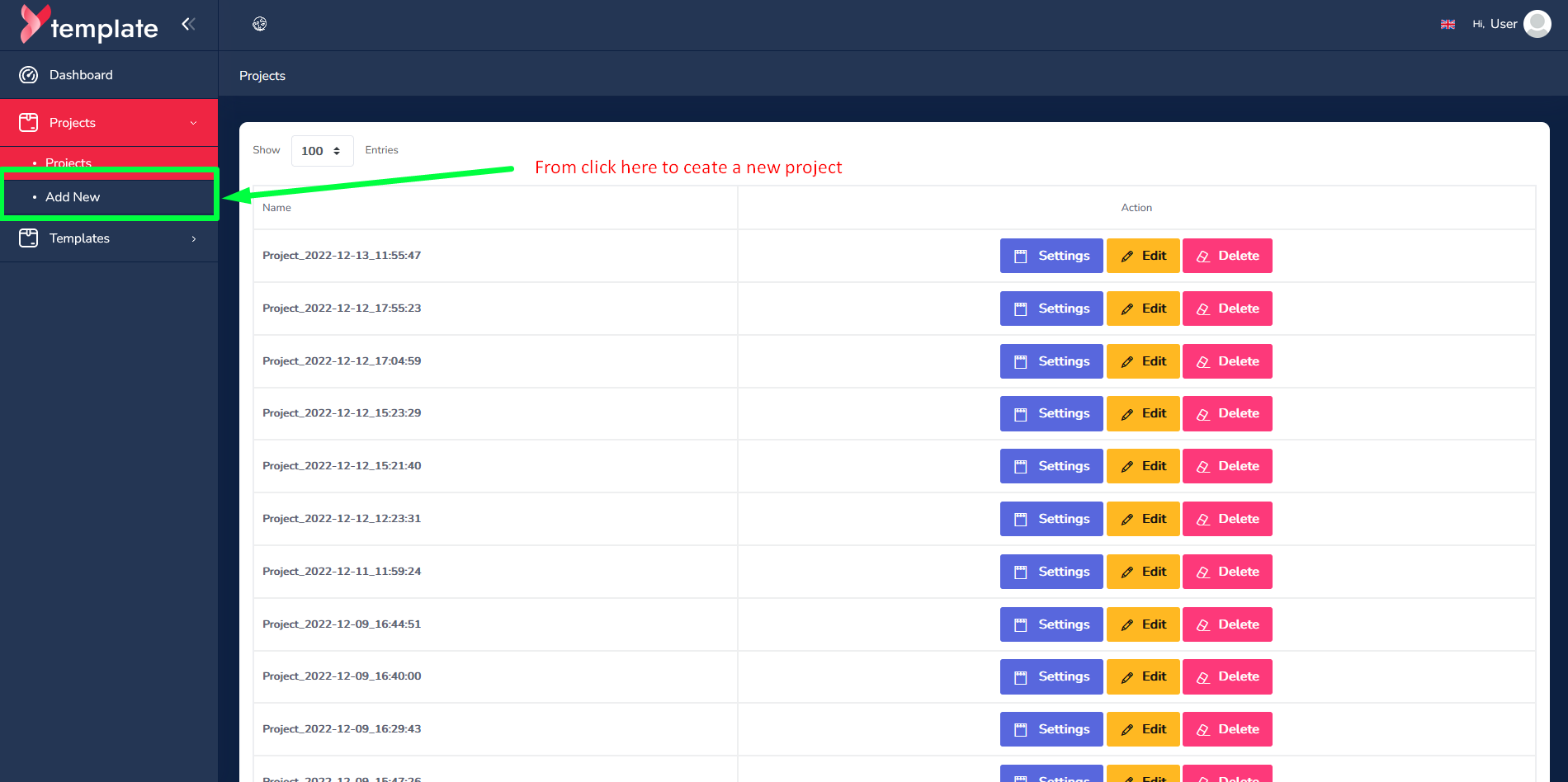 For creating a new project, first, go to the left side menu bar then Projects > Add New