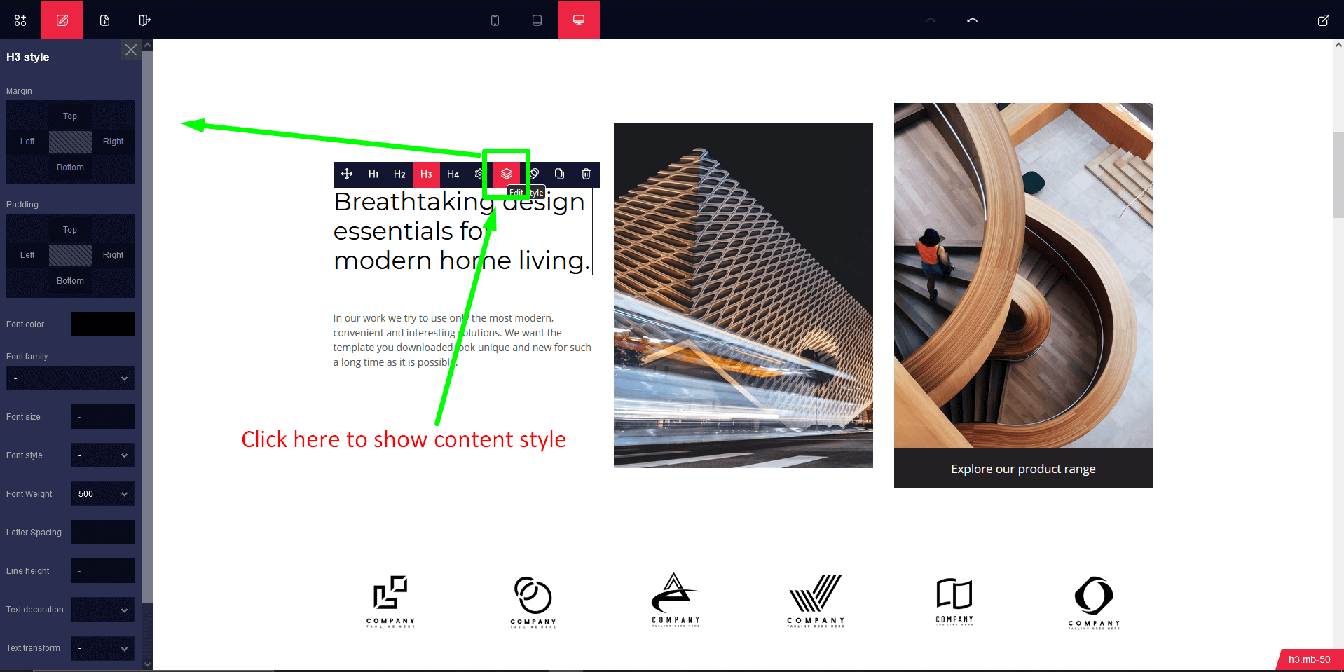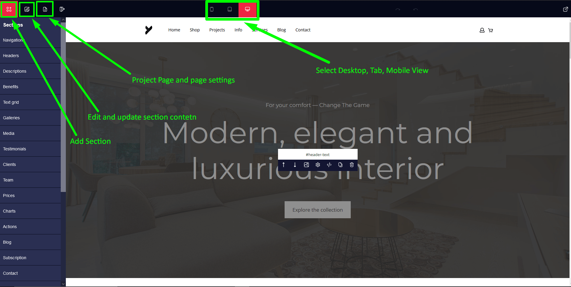 ***For any kind of edit or styling of content, always click on the edit section icon before edit or styling***