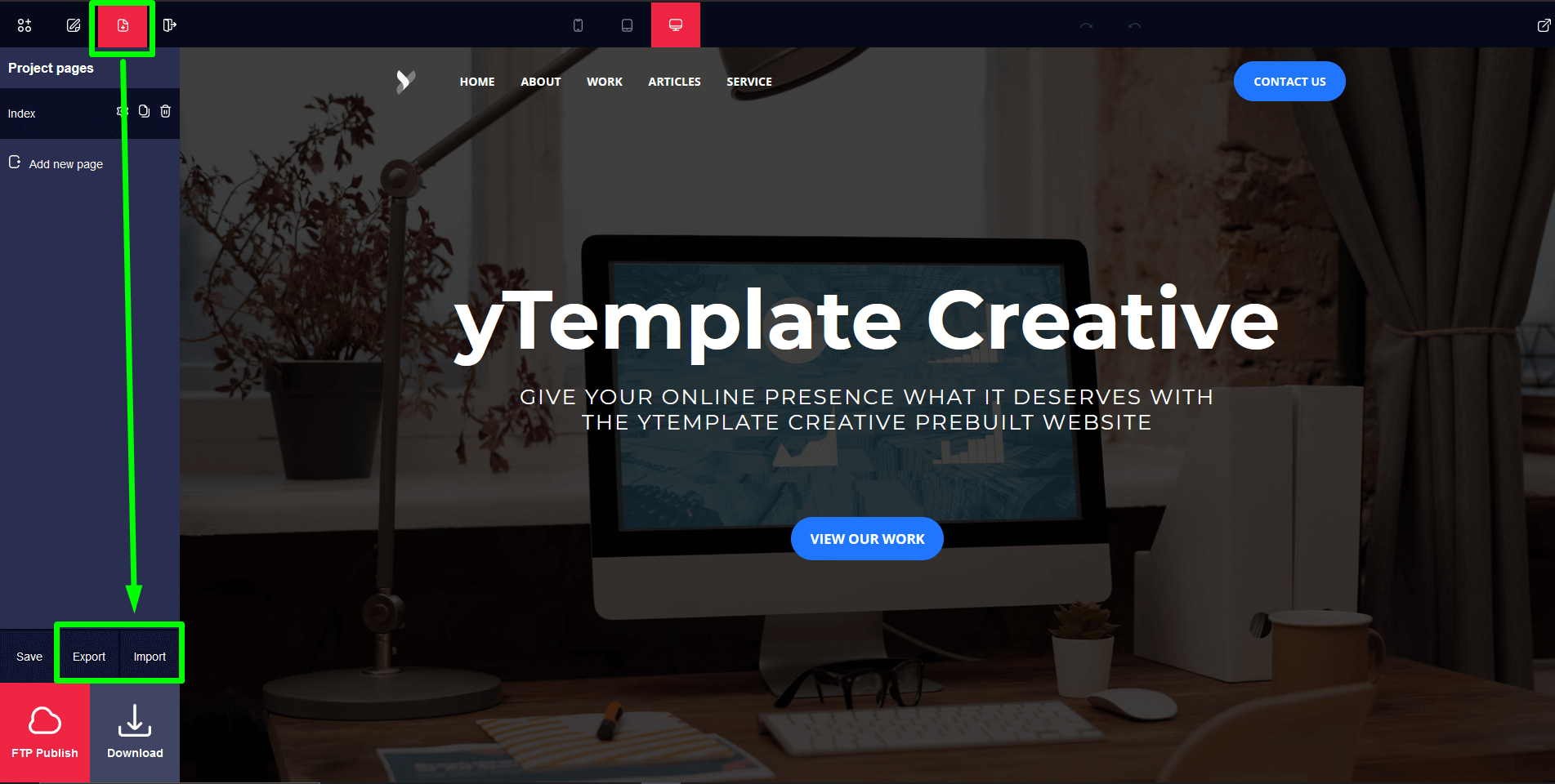 We can export any template which is build by ytemplate, also we can import file(File format: ".supra") which was build by ytemplate.
