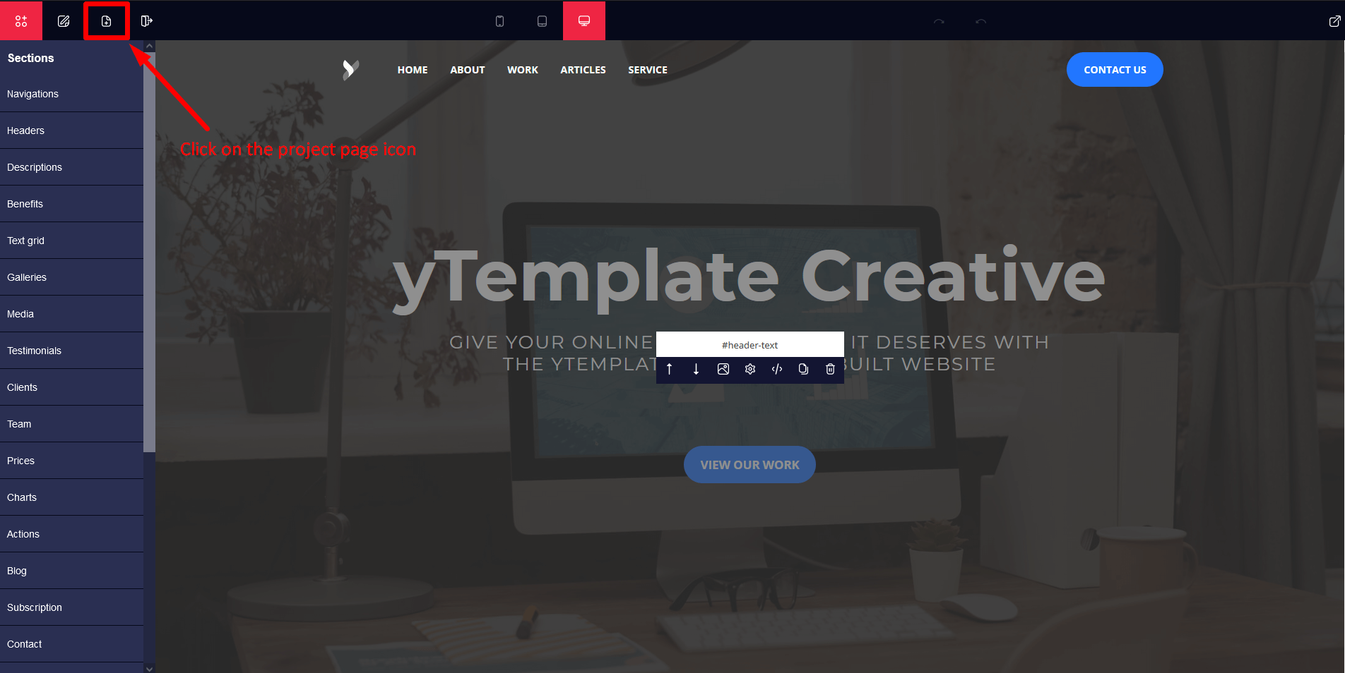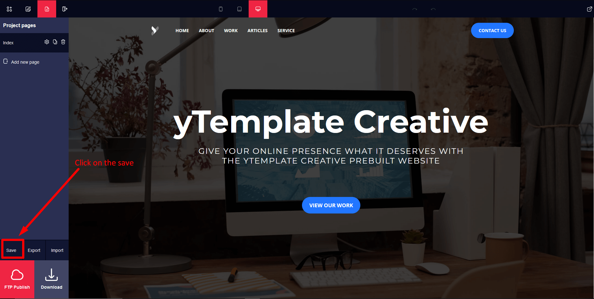 Click on the project page icon and then we will see a sidebar where we can save the project.